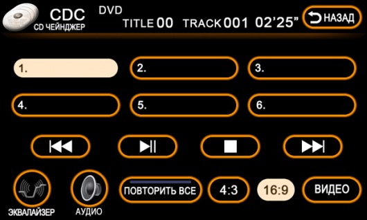 С сенсорного экрана монитора 6-ти дискового DVD чейнджера виртуальным