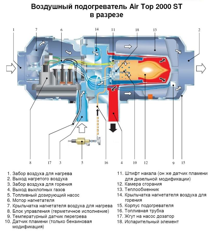 Главные преимущества Air Top 2000 ST — новый, более долговечный и легкий мотор. Кроме того, в качестве крыльчатки для нагнетателя воздуха используется специальная прокладка-изолятор, которая облегчает проход воздуха и предотвращает запыление.