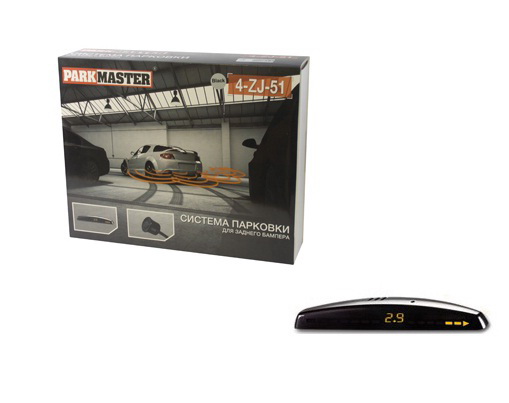 Датчики парковки.  Парктроник ParkMaster 4ZJ51 комплектуется 4 врезными датчиками диаметром 22 мм. Цвет сенсоров: серебристо-серый. Монтируются они в задний бампер, при этом установка довольно простая, а крепятся датчики очень надежно. Сенсоры, установленные в центре, обнаруживают препятствие на расстоянии от 0,3 до 3 метров, а те, что  закреплены по бокам — от 0,3 до 1,5 метров.