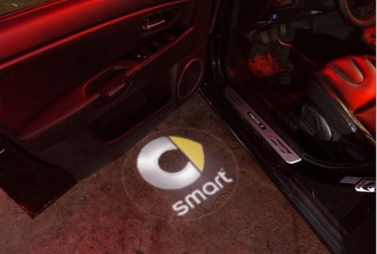 Подсветка с логотипом Smart — новый нестандартный вариант тюнинга! В дверь авто устанавливается миниатюрный проектор, который выводит на асфальт цветное изображение логотипа Смарт*. Картинка появляется, когда вы открываете дверь, и исчезает, когда дверь закрывается. Выглядит это очень стильно и необычно.