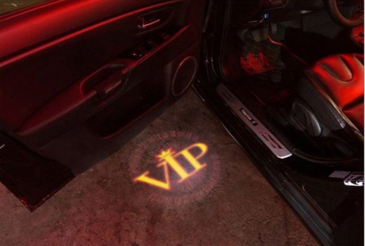 Подсветка в двери со знаком VIP — новый нестандартный вариант тюнинга! В дверь авто устанавливается миниатюрный проектор, который выводит на асфальт изображение знака VIP*. Картинка появляется, когда вы открываете дверь, и исчезает, когда дверь закрывается. Выглядит это очень стильно и необычно.