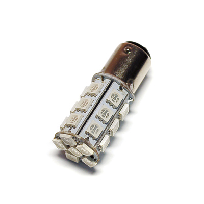 Светодиодная лампа BA15S 24SMD предназначена для установки в задние габаритные огни, повторитель поворота и в стоп-сигнал. Эта модель устойчива к вибрациям и механическим повреждениям и защищена от перегрева специальным алюминиевым корпусом. Прослужит такая лампа в несколько раз дольше, чем стандартная галогеновая, при этом световая температура ее не изменяется.