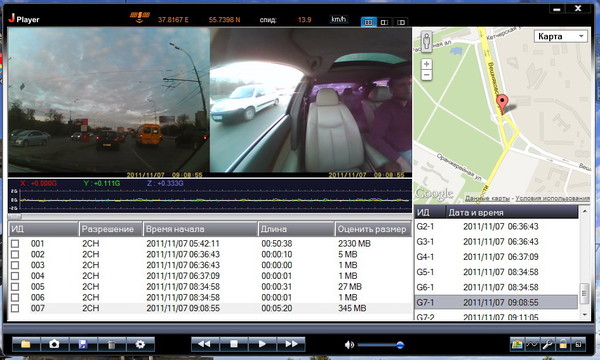Особенное преимущество регистратора — GPS-датчик, который фиксирует скорость автомобиля, маршрут и координаты. Вся эта информация может сыграть решающую роль при выяснении обстоятельств ДТП. Маршрут машины можно изучить при подключении прибора к компьютеру через USB.