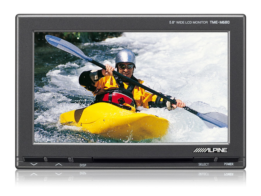 В данной модели применена TFT-матрица с разрешением 400 по горизонтали х 234 по вертикали х 3. Также Alpine TME-M680 оснащен встроенным ИК-передатчиком, благодаря которому можно слушать звук через ИК-наушники. А т.к. коммутационный блок оснащен сразу 2 разъемами mini-jack, к монитору можно подключить 2 пары проводных наушников.