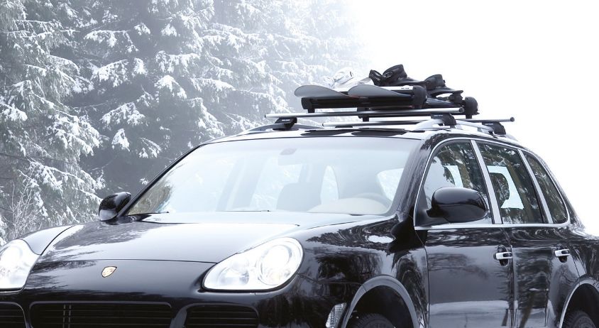 Лыжи или сноуборд закрепляются между двумя мягкими резиновыми профилями (защита от повреждений)