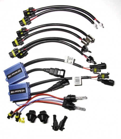 Комплект состоит из: 2 блоков, 2 ламп, проводки и переходников под цоколь ламп BA15S , T10, 7440, 3156