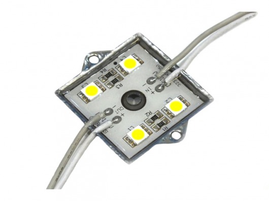 Квадратный светодиодный модуль MS 5050-4 IP65 5760Lm это 4 диода SMD 5050 и резисторы с рабочим напряжением 12V, которые находятся в металлическом корпусе. Яркость 1 диода составляет 72Lm, а всей упаковки — 5760Lm, что дает вам очень яркое и насыщенное свечение. Корпус залит двухкомпонентным компаундом. Поэтому вы можете использовать светодиодный модуль led в условиях  повышенной влажности и резкого перепада внешней температуры от  -30 до +50 градусов.