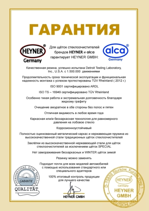 Чистящая резина стеклоочистителя изготовлена по специальной формуле. Благодаря этому дворник ALCA очистит лобовое стекло вашего автомобиля быстро, равномерно и бесшумно.