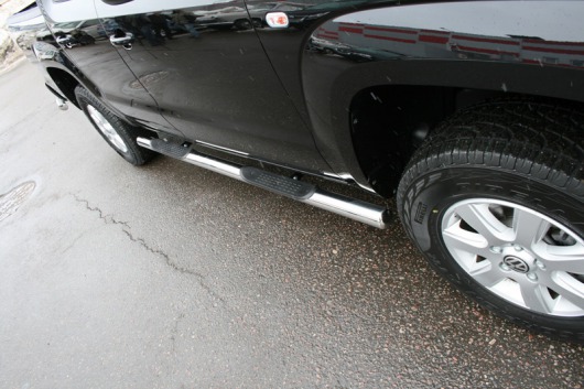 Боковые пороги-подножки сделаны специально для автомобилей Volkswagen Amarok от 2010 г.в., поэтому устанавливаются достаточно просто и без повреждений корпуса. Помимо этого, стальные пороги-трубы с проступями для Фольксваген Амарок смотрятся очень стильно и эффектно. Они добавят вашему авто еще больше солидности и внушительности.