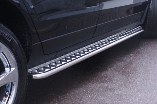 Боковые пороги-подножки сделаны специально для автомобилей Cadillac SRX от 2011 г.в., поэтому устанавливаются достаточно просто и без повреждений корпуса. Помимо этого, стальные пороги с листом для Кадиллак SRX смотрятся очень стильно и эффектно. Они добавят вашему авто еще больше солидности и внушительности.