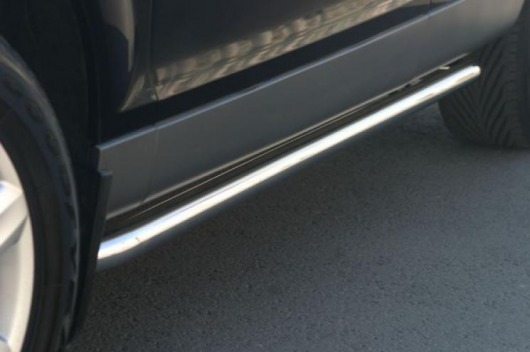 Пороги на Audi Q7 – это боковые подножки из нержавеющей стали диаметром 60 мм, которые позволяют более комфортно входить и выходить из салона автомобиля. Подножки Audi Q7 очень прочные, надежные и долговечные: они не боятся коррозии, сколов и царапин и выдерживают большие нагрузки.