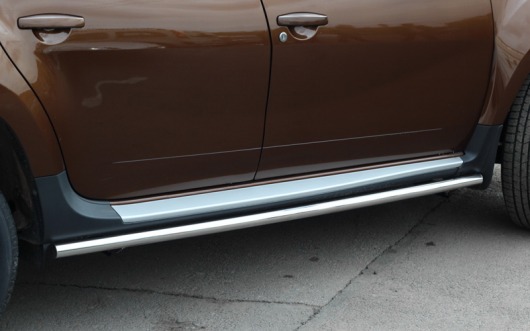 Пороги на Renault Duster – это боковые подножки из нержавеющей стали диаметром 42 мм, которые позволяют более комфортно входить и выходить из салона автомобиля. Подножки Renault Duster очень прочные, надежные и долговечные: они не боятся коррозии, сколов и царапин и выдерживают большие нагрузки.