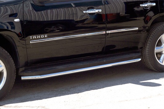 Защита для порогов Chevrolet Tahoe – это накладки на пороги из нержавеющей стали в форме трубы диаметром 60 мм. Главное их назначение – защита подножек авто от износа.