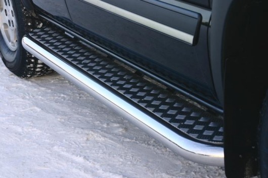 Боковые пороги-подножки сделаны специально для автомобилей Chevrolet Tahoe 2007-2008 г.в., поэтому устанавливаются достаточно просто и без повреждений корпуса. Помимо этого, стальные пороги с листом для Шевроле Тахо смотрятся очень стильно и эффектно. Они добавят вашему авто еще больше солидности и внушительности.