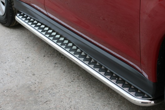 Пороги на Mitsubishi ASX – это боковые подножки из нержавеющей стали диаметром 42 мм, которые позволяют более комфортно входить и выходить из салона автомобиля. Подножки Mitsubishi ASX очень прочные, надежные и долговечные: они не боятся коррозии, сколов и царапин и выдерживают большие нагрузки.