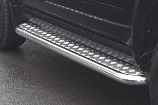 Пороги на Great Wall Hover – это боковые подножки из нержавеющей стали диаметром 60 мм, которые позволяют более комфортно входить и выходить из салона автомобиля. Подножки Great Wall Hover очень прочные, надежные и долговечные: они не боятся коррозии, сколов и царапин и выдерживают большие нагрузки.