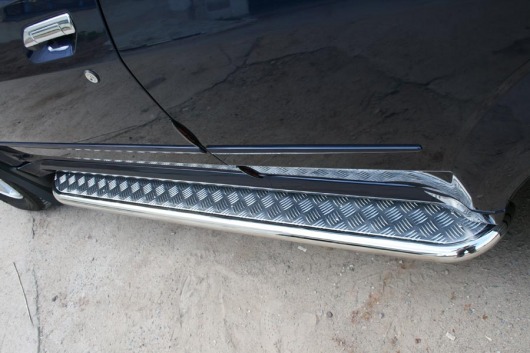Боковые пороги-подножки сделаны специально для автомобилей Great Wall Hover от 2008 г.в., поэтому устанавливаются достаточно просто и без повреждений корпуса. Помимо этого, стальные пороги с листом для Грейт Волл Ховер смотрятся очень стильно и эффектно. Они добавят вашему авто еще больше солидности и внушительности.