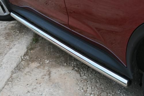 Боковые пороги-подножки сделаны специально для автомобилей Nissan Juke 4x4 от 2011 г.в., поэтому устанавливаются достаточно просто и без повреждений корпуса. Помимо этого, стальные пороги-трубы для Ниссан Жук 4x4 смотрятся очень стильно и эффектно. Они добавят вашему авто еще больше солидности и внушительности.
