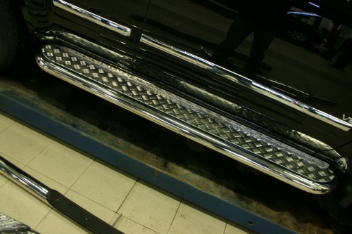 Боковые пороги-подножки сделаны специально для автомобилей Nissan Pathfinder от 2005, 2010 г.в., поэтому устанавливаются достаточно просто и без повреждений корпуса. Помимо этого, стальные пороги с листом для Ниссан Патфайндер смотрятся очень стильно и эффектно. Они добавят вашему авто еще больше солидности и внушительности.