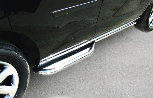 Пороги на Nissan Murano – это боковые подножки из нержавеющей стали диаметром 60 мм, которые позволяют более комфортно входить и выходить из салона автомобиля. Подножки Nissan Murano очень прочные, надежные и долговечные: они не боятся коррозии, сколов и царапин и выдерживают большие нагрузки.