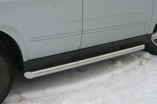 Боковые пороги-подножки сделаны специально для автомобилей SsangYong Kyron от 2007 г.в., поэтому устанавливаются достаточно просто и без повреждений корпуса. Помимо этого, стальные пороги-трубы для Санг Енг Кайрон смотрятся очень стильно и эффектно. Они добавят вашему авто еще больше солидности и внушительности.