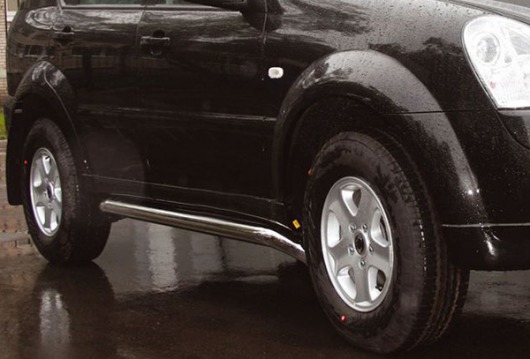 Пороги на SsangYong Rexton – это боковые подножки из нержавеющей стали диаметром 60 мм, которые позволяют более комфортно входить и выходить из салона автомобиля. Подножки SsangYong Rexton очень прочные, надежные и долговечные: они не боятся коррозии, сколов и царапин и выдерживают большие нагрузки.