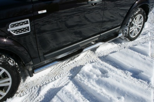Пороги на Land Rover Discovery IV – это боковые подножки из нержавеющей стали диаметром 76 мм, которые позволяют более комфортно входить и выходить из салона автомобиля. Подножки Land Rover Discovery IV очень прочные, надежные и долговечные: они не боятся коррозии, сколов и царапин и выдерживают большие нагрузки.