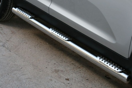 Пороги на Kia Sportage – это боковые подножки из нержавеющей стали диаметром 76 мм, которые позволяют более комфортно входить и выходить из салона автомобиля. Подножки Kia Sportage очень прочные, надежные и долговечные: они не боятся коррозии, сколов и царапин и выдерживают большие нагрузки.