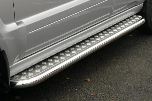 Боковые пороги-подножки сделаны специально для автомобилей Kia Sorento от 2006 г.в., поэтому устанавливаются достаточно просто и без повреждений корпуса. Помимо этого, стальные пороги с листом для Киа Соренто смотрятся очень стильно и эффектно. Они добавят вашему авто еще больше солидности и внушительности.