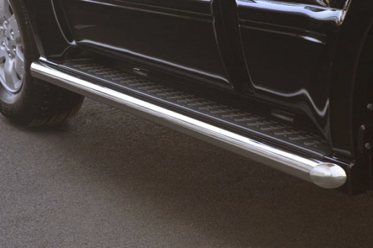 Защита для порогов Mitsubishi Pajero III – это накладки на пороги из нержавеющей стали в форме трубы диаметром 60 мм. Главное их назначение – защита подножек авто от износа.