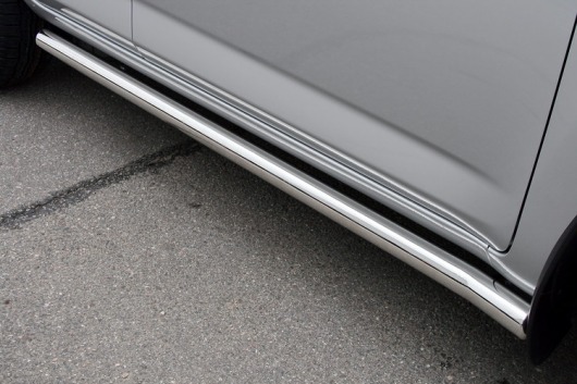Пороги на Toyota RAV4 SWB – это боковые подножки из нержавеющей стали диаметром 60 мм, которые позволяют более комфортно входить и выходить из салона автомобиля. Подножки Toyota RAV4 SWB очень прочные, надежные и долговечные: они не боятся коррозии, сколов и царапин и выдерживают большие нагрузки.