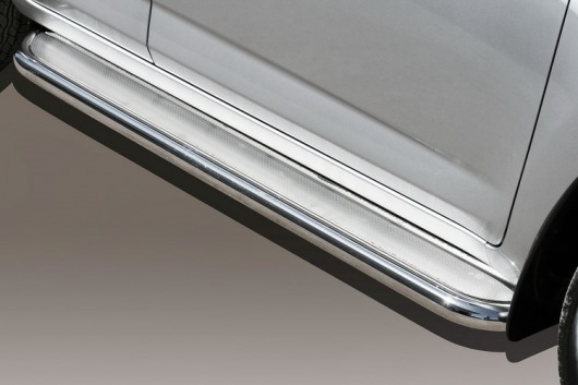 Пороги на Toyota RAV4 SWB – это боковые подножки из нержавеющей стали диаметром 60 мм, которые позволяют более комфортно входить и выходить из салона автомобиля. Подножки Toyota RAV4 SWB очень прочные, надежные и долговечные: они не боятся коррозии, сколов и царапин и выдерживают большие нагрузки.