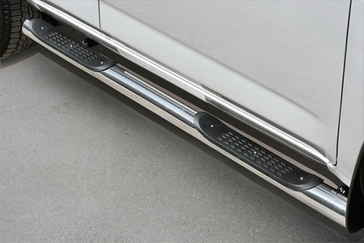 Боковые пороги-подножки с проступями сделаны специально для автомобилей Toyota RAV4 SWB 2010 г.в., поэтому устанавливаются достаточно просто и без повреждений корпуса. Помимо этого, стальные пороги для Тойота РАВ4 SWB смотрятся очень стильно и эффектно. Они добавят вашему авто еще больше солидности и внушительности.