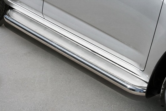 Пороги на Toyota RAV4 SWB – это боковые подножки из нержавеющей стали диаметром 60 мм, которые позволяют более комфортно входить и выходить из салона автомобиля. Подножки Toyota RAV4 SWB очень прочные, надежные и долговечные: они не боятся коррозии, сколов и царапин и выдерживают большие нагрузки.