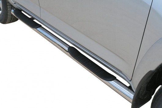 Пороги на Toyota RAV4 LWB – это боковые подножки из нержавеющей стали диаметром 76 мм, которые позволяют более комфортно входить и выходить из салона автомобиля. Подножки Toyota RAV4 LWB очень прочные, надежные и долговечные: они не боятся коррозии, сколов и царапин и выдерживают большие нагрузки.