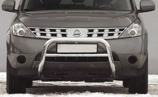 Передняя решетка Nissan Murano (кенгурятник) – это защитная дуга на бампер из нержавеющей стали диаметром 60 мм.