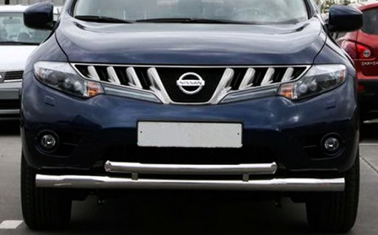 Защита переднего бампера для Nissan Murano – это двойная труба на бампер из нержавеющей стали диаметром 76/60 мм.