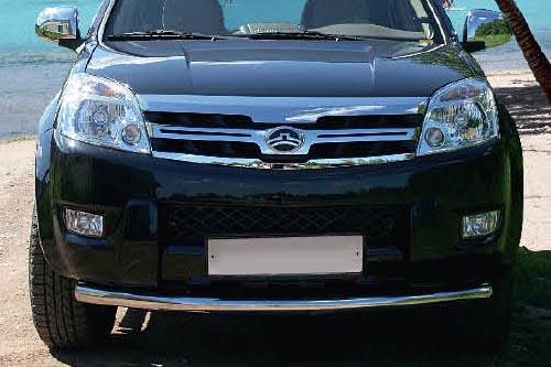 Защита переднего бампера труба предназначена для автомобилей Great Wall Hover 2008-2009 г.в. Вам не придется подгонять защиту под размеры бампера вашего авто. И с монтажом проблем не возникнет: установка защиты переднего бампера производится в штатные отверстия, а значит, необходимость сверлить кузов отпадает.
