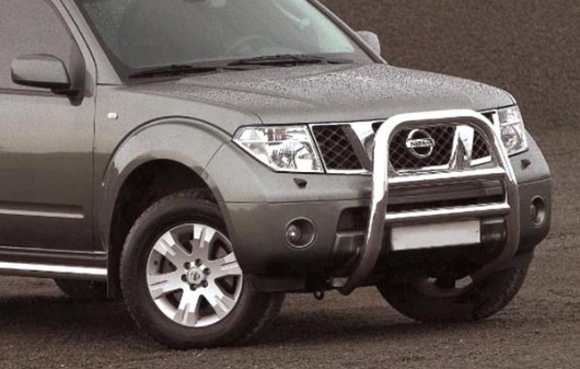 Передняя решетка Nissan Pathfinder (кенгурятник) – это защитная дуга на бампер из нержавеющей стали диаметром 76 мм.