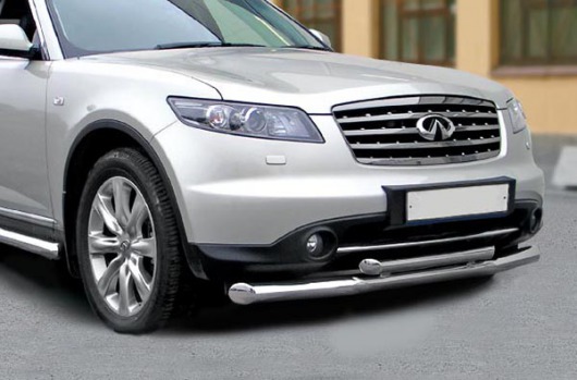 Защита переднего бампера для Infiniti FX – это двойная труба на бампер из нержавеющей стали диаметром 76/60 мм.