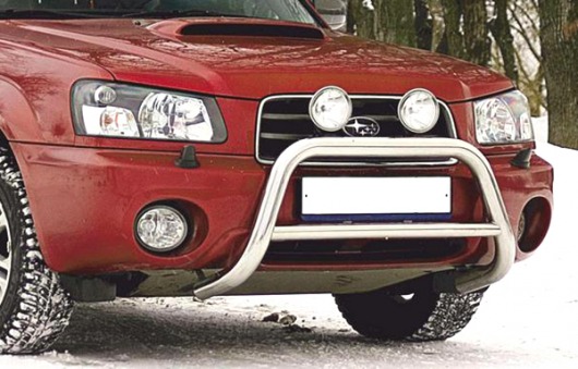 Передняя решетка Subaru Forester (кенгурятник) – это защитная дуга на бампер из нержавеющей стали диаметром 60 мм.