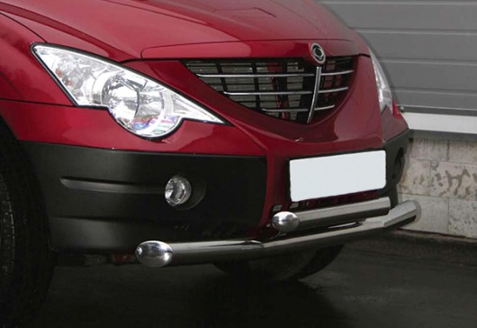 Труба на бампер SsangYong Actyon Sport защищает передний бампер автомобиля от различных механических повреждений при мелких ДТП и неудачных парковках, а также незаменима при езде по бездорожью. А кроме этого, труба на передний бампер Санг Енг Актион Спорт смотрится очень стильно и эффектно.