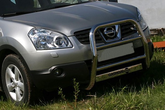 Передняя решетка Nissan Qashqai (кенгурятник) – это защитная дуга на бампер из нержавеющей стали диаметром 60 мм.