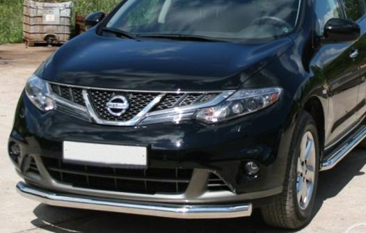 Труба на бампер Nissan Murano защищает передний бампер автомобиля от различных механических повреждений при мелких ДТП и неудачных парковках, а также незаменима при езде по бездорожью. А кроме этого, труба на передний бампер Ниссан Мурано смотрится очень стильно и эффектно.