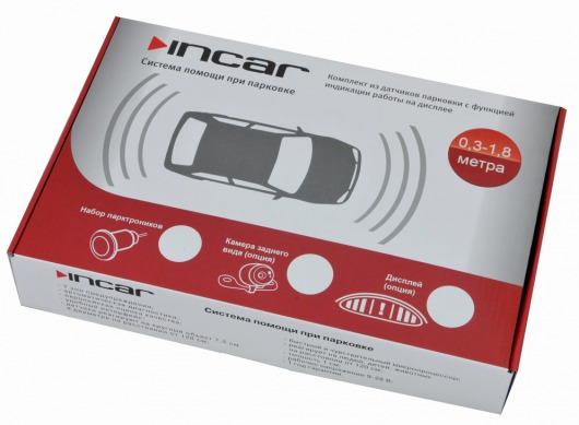 Парктроник Incar PT-1044 оснащен 4 сенсорными датчиками диаметром 18,5 мм. Они имеют серебристую окраску. При желании вы сможете легко перекрасить их в любой цвет кузова. Датчики парковки очень чувствительны: определяют расстояние до опасного объекта от 30 см до 1,8 метров. Видео парктроник значительно помогает при парковке и снижает риск повреждения автомобиля при движении задним ходом.