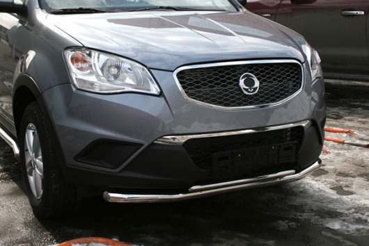Защита переднего бампера для SsangYong Actyon – это двойная труба на бампер из нержавеющей стали диаметром 76/42 мм.