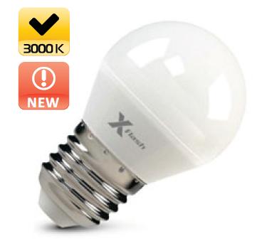 Светодиодная лампа X-Flash Globe E27 5W — лампа общего освещения. Колба имеет шарообразную форму, матовая. Уникальный радиатор led лампы способствует понижению температуры внутри нее, тем самым увеличивается срок службы. Данная модель рассчитана на напряжение 220 В. Мощность диодной лампы X-Flash — 5 Вт., яркость — 380 Лм, а температура свечения – 3000 K (это желтый свет).