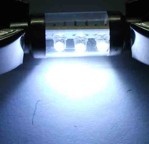 Светодиодная лампа 31-41 в колбе на основе 3 Led диодов - это гарантия качества стекла и света. Белый, красный, синий, зеленый или желтый цвет свечения - ваш салон или госномер будут смотреться стильно и современно.