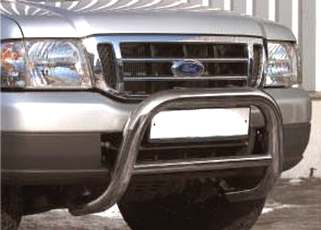 Передняя решетка Ford Ranger (кенгурятник) – это защитная дуга на бампер из нержавеющей стали диаметром 76 мм.