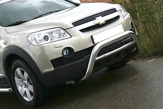 Передняя решетка Chevrolet Captiva (кенгурятник) – это защитная дуга на бампер из нержавеющей стали диаметром 76 мм.